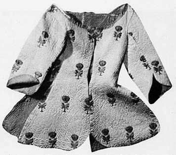 is added. The jacket is lined and the edges bound with ribbon;