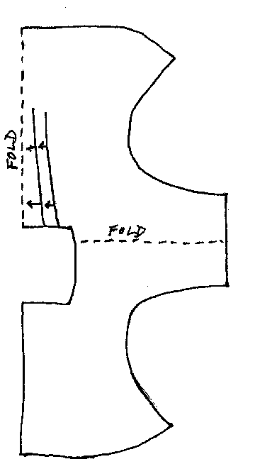 Measurements needed: __ length from the shoulder fold to the hem __ Waist: width of torso at waistline (or raised waistline, for early 19th c. styles), plus 2" to 3" for ease __ width from the back center line to about 1-2" below your elbow __ circumference of your arm just below the elbow, plus about 2" __ width of neckline: measure from center line to about 3" in from shoulder __ depth of neckline in front: measure from top of shoulder to about 1-2" above top of stays (depth of neckline in back should be about 2" to 3") |