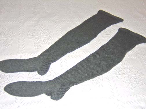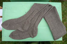 These were sent to me by Jane Atkinson (nice work, Jane!): Here's a pair I knitted (with a modern heel, per request): |
